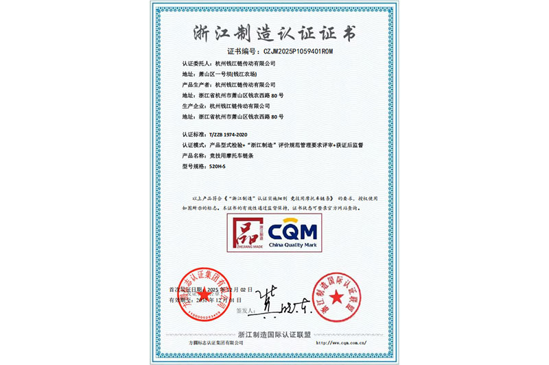 Zhejiang-Fertigungszertifizierungszertifikat