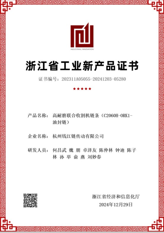 Um diese Probleme anzugehen, hat das Unternehmen die „High Wear-Resistance Combined Harvester Chain C2060H-ORK1 Oil-Sealed Chain“ entwickelt. Durch die Optimierung des Kettenstrukturdesigns, die Verwendung von hochwertigem legiertem Baustahl, den Einsatz der CNC-Komposit-Präzisionsstanztechnologie und des isothermen Abschreckprozesses durch Wärmebehandlung werden die Festigkeit und Oberflächenhärte der Kettenkomponenten verbessert, die Dichtungsleistung des Schmieröls für ineinandergreifende Teile verbessert, die Korrosionsbeständigkeit erhöht und die Lebensdauer verlängert.