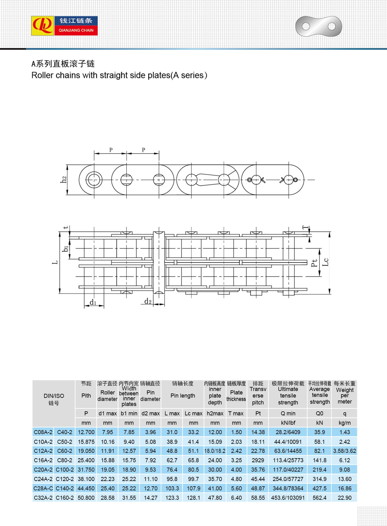 Neben ihrer Langlebigkeit sind Rollenketten der A-Serie auch auf einfache Wartung ausgelegt. Ihre einfache Konstruktion ermöglicht schnelle Inspektionen und Reparaturen, minimiert Ausfallzeiten und sorgt für einen reibungslosen Betrieb. Ganz gleich, ob sie in der Fertigung, in Fördersystemen oder anderen industriellen Anwendungen eingesetzt werden, diese Rollenketten sind eine vertrauenswürdige Wahl für Unternehmen, die auf der Suche nach hoher Qualität, geringem Wartungsaufwand und langlebiger Leistung sind.
