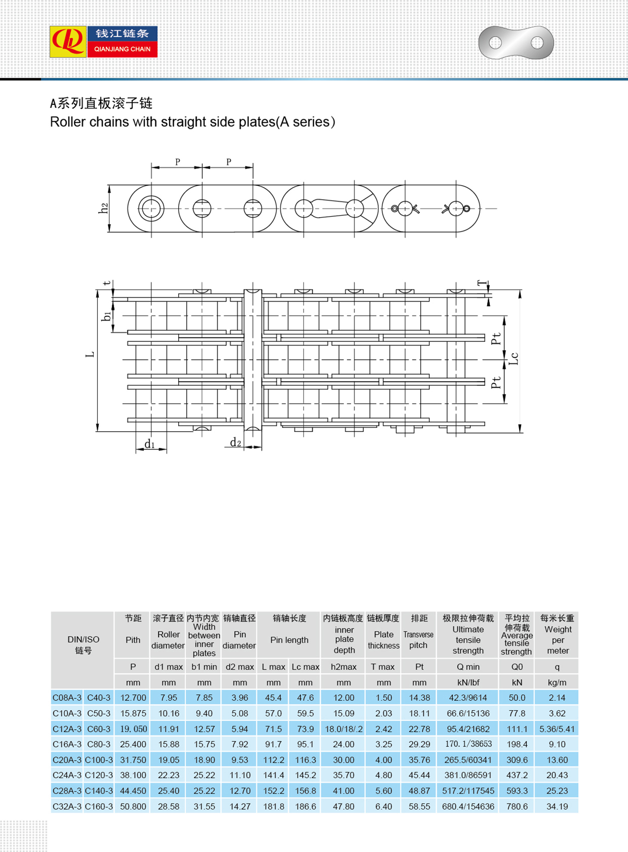 Rollenketten mit geraden Seitenplatten (A-Serie) sind auf Langlebigkeit, Effizienz und einfache Wartung ausgelegt. Diese Ketten sind für ihren geräuscharmen Betrieb bekannt und bieten einen reibungslosen und leisen Betrieb, was sie ideal für Umgebungen macht, in denen Schallreduzierung wichtig ist. Die für die Konstruktion dieser Ketten verwendeten Materialien werden sorgfältig aufgrund ihrer hohen Festigkeit ausgewählt, sodass sie selbst unter anspruchsvollen Bedingungen weniger bruchanfällig sind.
