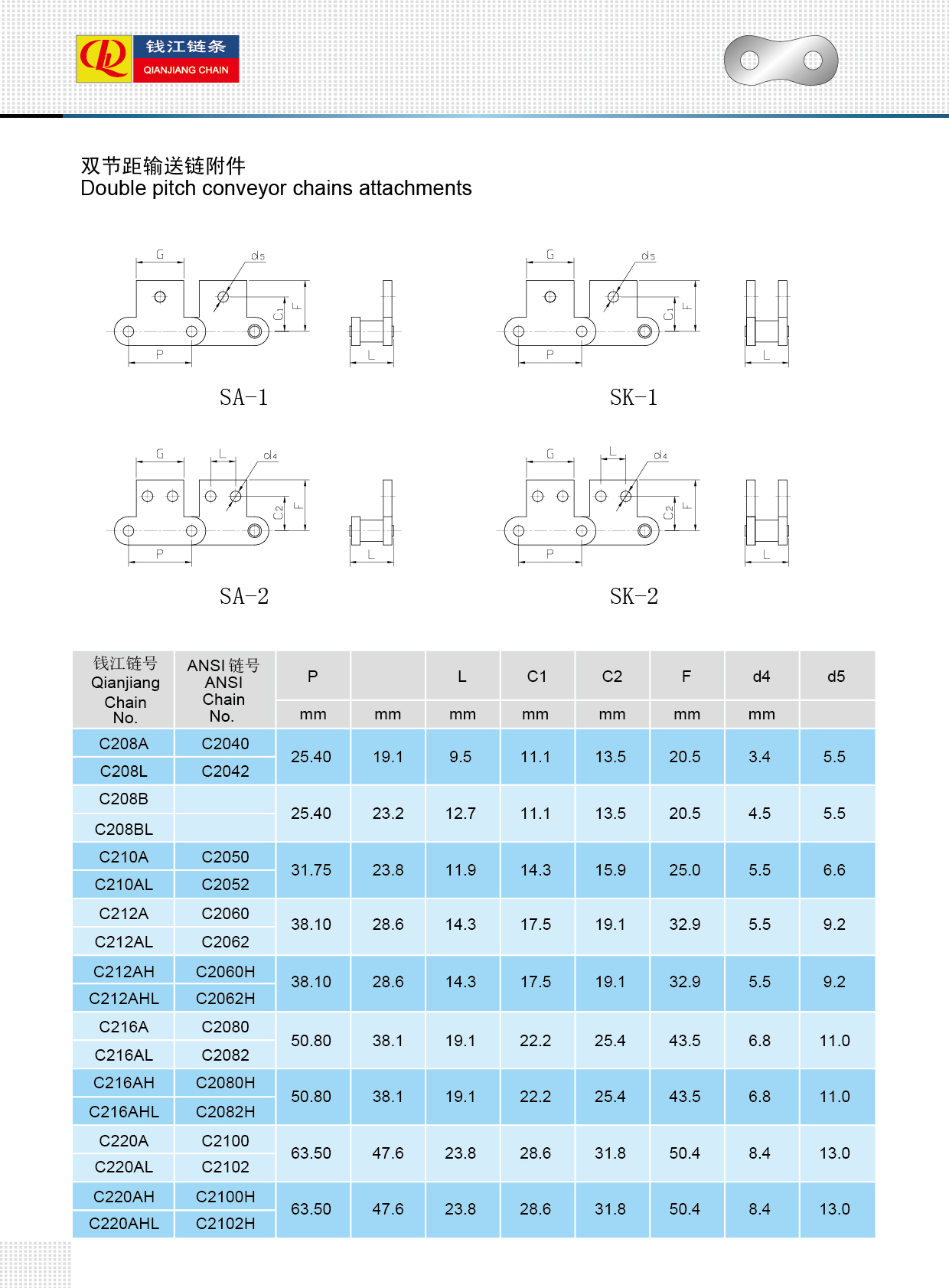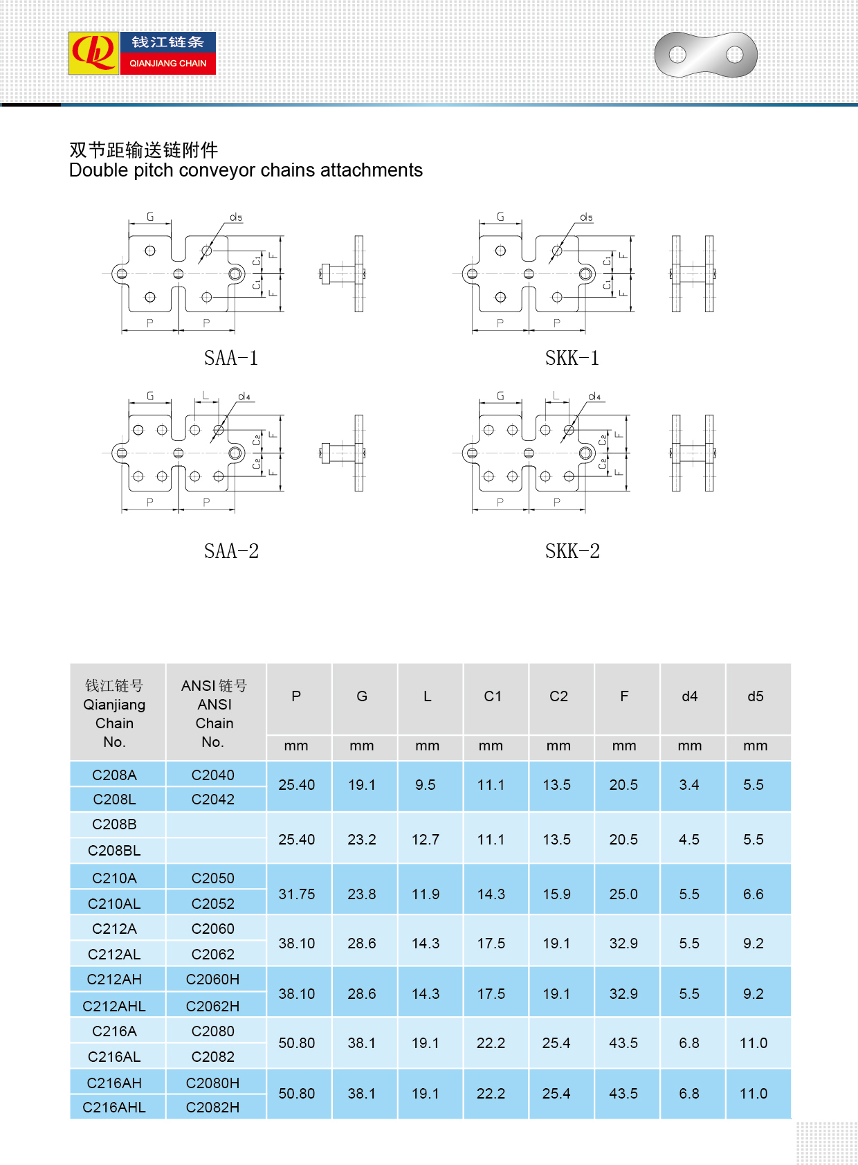 Anbauteile für Förderketten mit doppelter Teilung