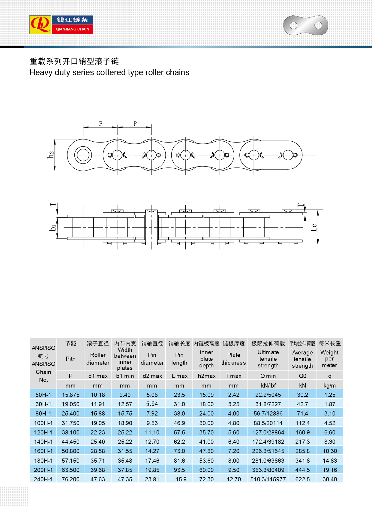 Diese Ketten sind so konstruiert, dass sie Belastungen, hohen Geschwindigkeiten und rauen Betriebsumgebungen standhalten. Aufgrund ihrer robusten Konstruktion eignen sie sich für Branchen wie Bergbau, Baugewerbe, Landwirtschaft und Fertigung, in denen Geräte kontinuierlich unter schwierigen Bedingungen betrieben werden müssen. Dank korrosionsbeständiger Materialien und präziser Fertigung behalten die Splintrollenketten der Heavy Duty-Serie ihre Integrität auch in Umgebungen mit hoher Feuchtigkeit oder Abrieb.