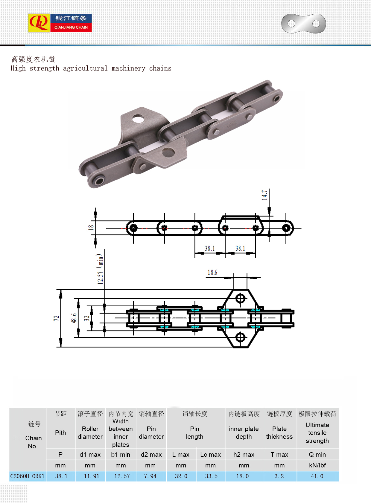 Hochfeste Ketten für landwirtschaftliche Maschinen zeichnen sich durch Verschleißfestigkeit, Festigkeit und Lebensdauer aus und eignen sich für verschiedene komplexe Arbeitsbedingungen. Es werden hochwertige legierte Stahlmaterialien verwendet und die Zugfestigkeit und Ermüdungslebensdauer der Kette werden durch Wärmebehandlungsprozesse (wie Aufkohlen, Anlassen und Abschrecken) verbessert. Die Kettenkontaktfläche ist speziell gehärtet, mit glatter Oberfläche und guter Verschleißfestigkeit, geeignet für Hochfrequenzarbeiten. Präzise Verarbeitungstechnologie sorgt dafür, dass die Kettenglieder genau aufeinander abgestimmt sind, reibungslos laufen und Geräusche und Vibrationen reduzieren. Verschiedene Teilungen, Stärken und Formen (z. B. Rollenketten, Zubehörketten, gebogene Plattenketten usw.) können entsprechend den Unterstützungsanforderungen verschiedener landwirtschaftlicher Maschinen und Geräte angepasst werden. Wird im Übertragungsmechanismus zum Fördern, Schneiden und Dreschen von Weizen-, Reis-, Maiserntemaschinen usw. verwendet. Der Antrieb der Säscheibe und der Düngerwelle erfordert einen präzisen und langlebigen Kettenlauf. Wird auf landwirtschaftliche Förderbänder, Materialaufzüge usw. angewendet, um hochfrequente Transportaufgaben zu übernehmen.