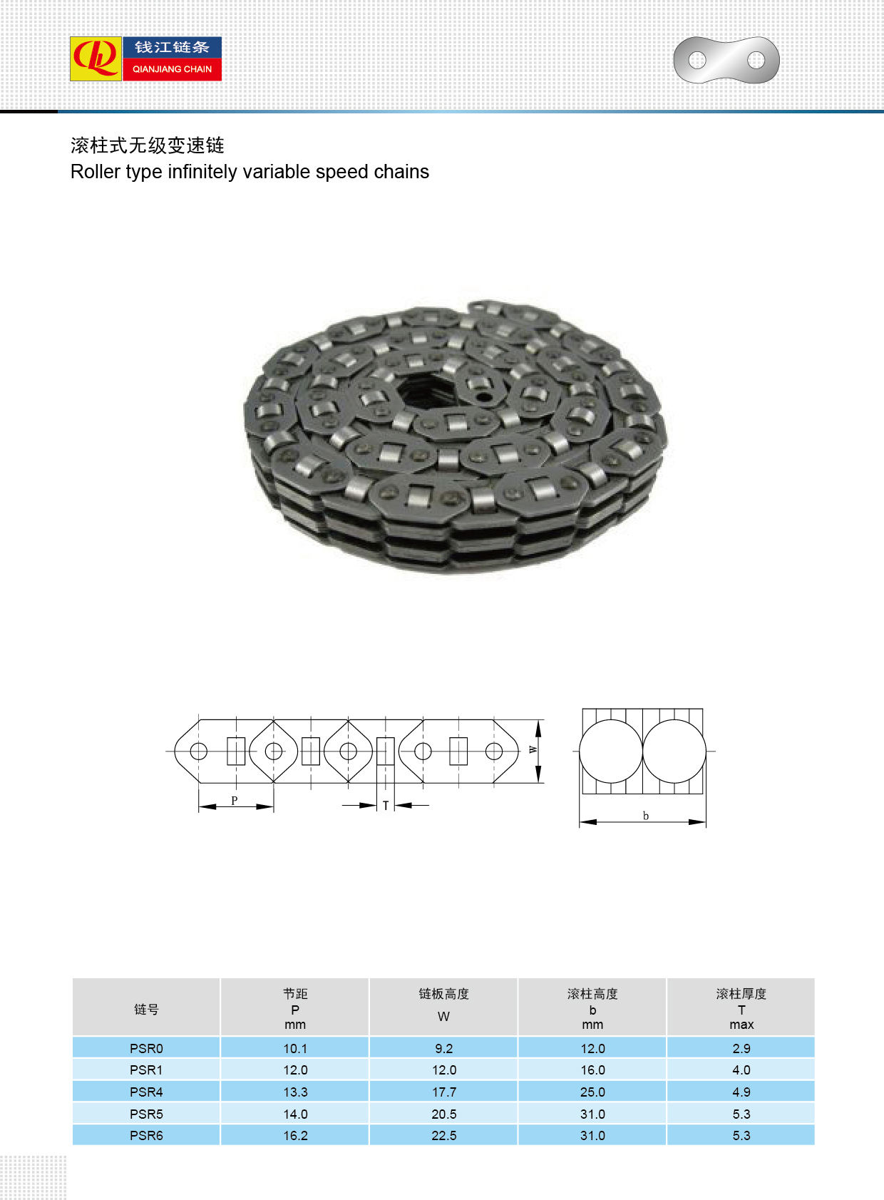 PSR-Ketten mit stufenloser Geschwindigkeitsregelung und Rollentyp
