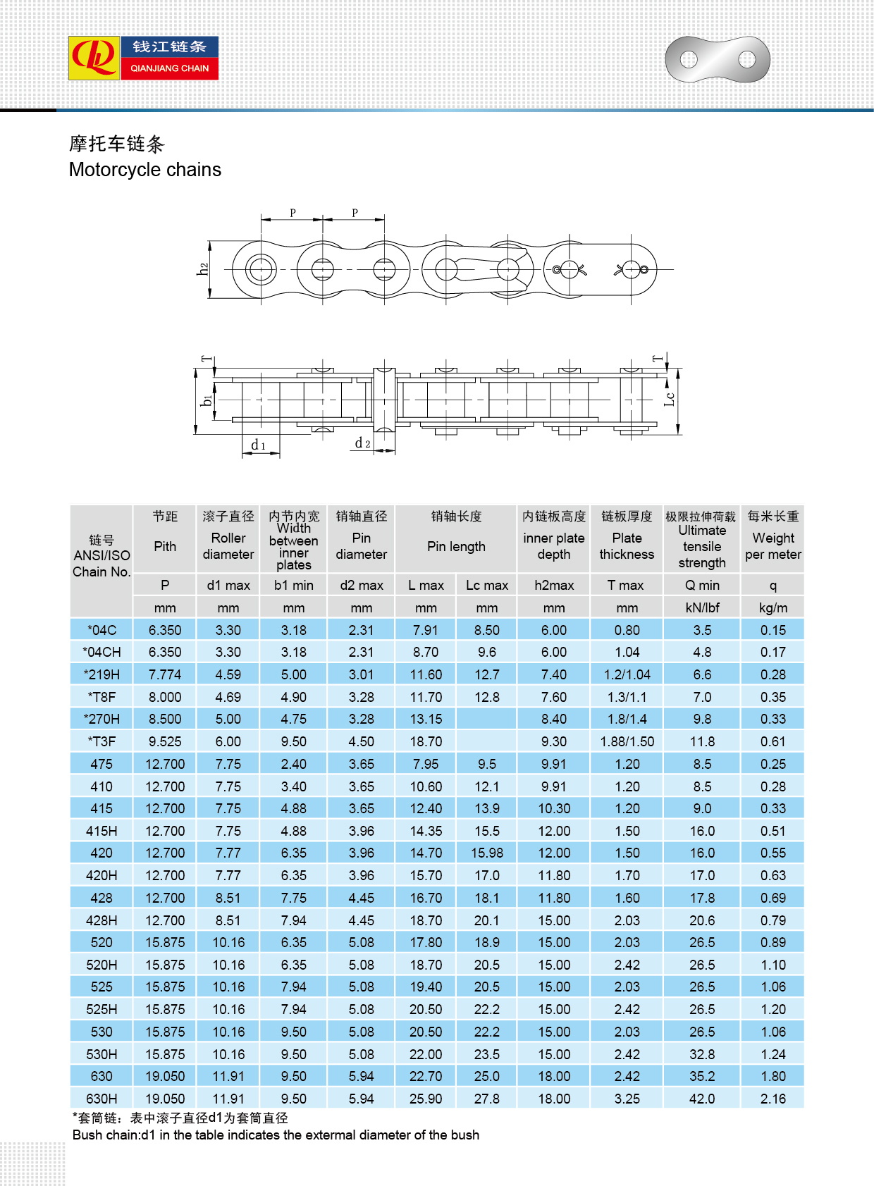 Hangzhou Qianjiang Chain Industries Co., Ltd. wurde 1987 gegründet und hat sich auf die Produktion von Präzisionsrollenketten der A.B-Serie, Motorrad-Spezialketten und High-End-Öldichtungsketten, Ketten aller Arten von Logistik- und Transportmaschinen, staub- und wasserdichten industriellen Öldichtungsketten und landwirtschaftlichen Maschinenketten, Hebemaschinenketten, geräuschlosen Zahnübertragungsketten, stufenlosen Übertragungsketten, intelligenten Tür- und Fensterbiegeketten, Edelstahlketten, nicht standardmäßigen Spezialketten und Kettenrädern spezialisiert. Seit 1991 wurden in Zusammenarbeit mit dem Chain Transmission Research Institute der Jilin University of Technology des China Chain Research Institute die PIV-Stufenübertragungskette und die Silent-Zahnkette der CL-Serie optimiert und verbessert, die High-End-Öldichtungskette für Motorräder und die Präzisionsrollenkette der Heavy-Duty-Serie entwickelt und die Zusammenarbeit von Produktion, Lernen und Forschung etabliert.